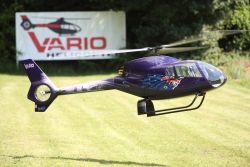 The H120 from VARIO is a 1050 size scale helicopter. You can power this remote-controlled model helicopter with turbine or electric propulsion. Eurocopter is the creator of the man-carrying version and Airbus Helicopters produces this helicopter. The EC 120 (H 120) is a large model made more impressive by its specially developed dome mechanics which leave the builder all the required space to build a full scale cockpit. The pre-welded landing skids and luggage door are exactly the same as the full size version. The fuselage was developed with 3-D data that was offered to Vario by Airbus Helicopters.