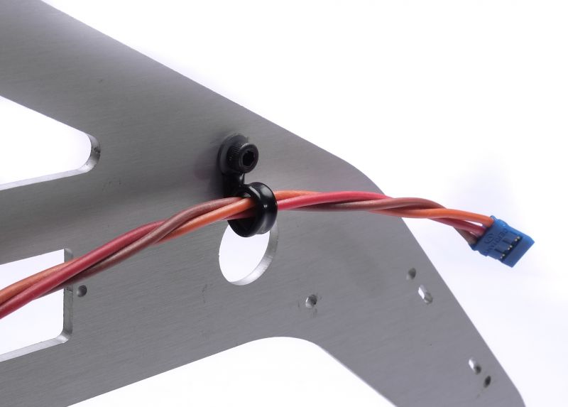The cable holder can be fixed over the eyelet. then wrap the sheathed metal strap around the cable.