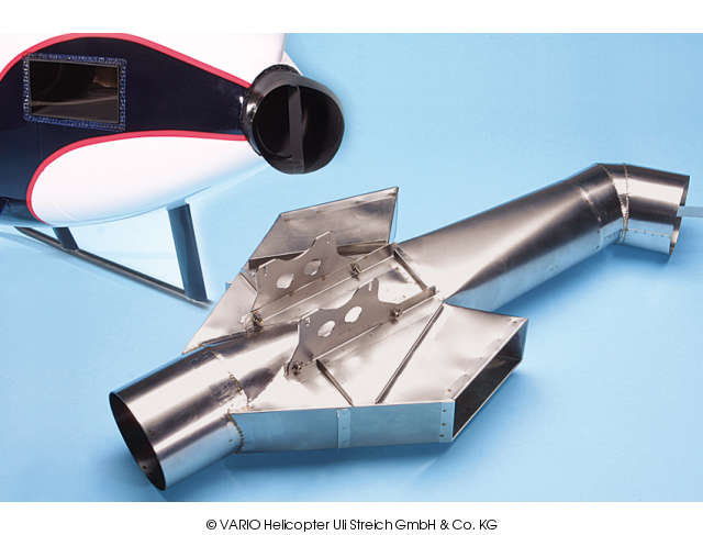 The outlets on the left and right hand sides offer the necessary cross-section and greatly reduce the forward thrust.