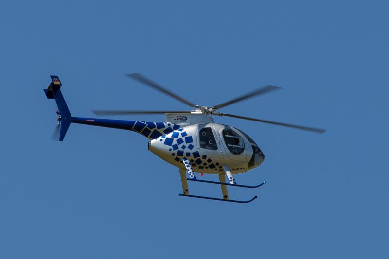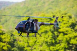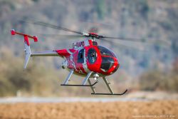 The "big Hughes 500E" from VARIO is a 850 size scale helicopter. You can power this remote-controlled model helicopter with gasoline (benzin), turbine or electric propulsion. Hughes Helicopters is the creator of the man-carrying version and the Boeing daughter McDonnell Douglas produces this helicopter.